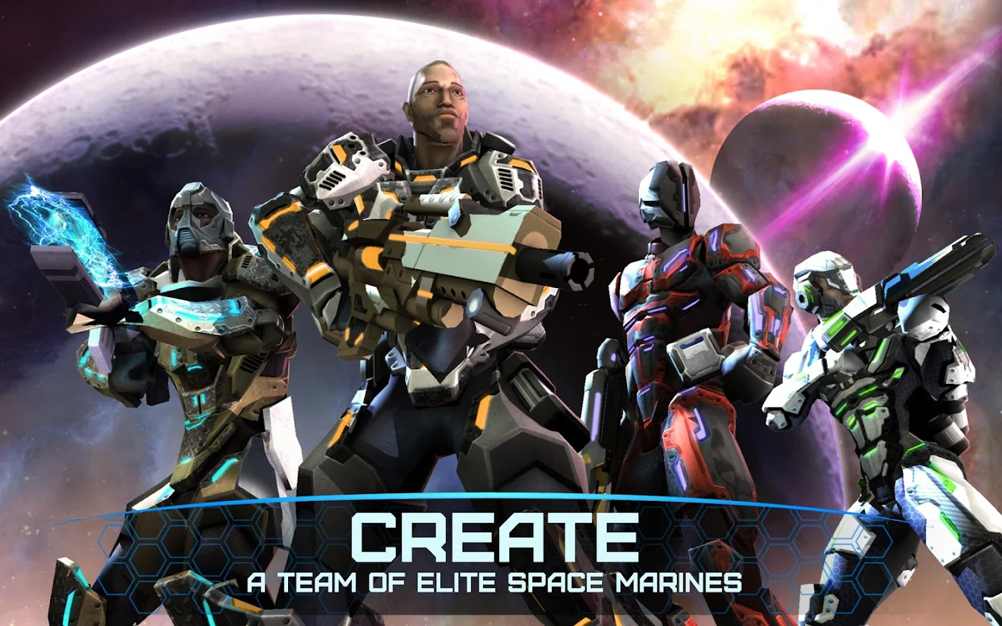 MELATIH tim elit ruang marinir. EQUIP prajurit dengan senjata, helm dan baju besi untuk pertempuran epik. MENYERANG tim lawan dari seluruh tata surya. Menaklukkan galaksi, satu planet pada suatu waktu. FIGHT untuk kemenangan dan memerintah alam semesta!